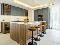 Just a short walk from services and restaurants, including a supermarket. The large commercial centre of Central Plazas is just a 10 minute walk away. The villa is in a no-through road, guaranteeing a peaceful and private location, free of traffic. The villa itself is very impressive and the materials used in the refurbishment are top quality. Upon entering on the villa we find a spacious open plan configuration, with large windows that allow plenty of natural light into the property. This area incorporates the kitchen, with island and completely fitted out with quality appliances including a wine fridge, the dining area and the living area with fireplace .