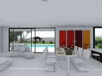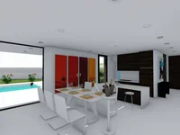 (RU) Продаётся дом в Кальпе в районе Canuta I. Общая площадь 265.00 м2, участок 2760 м2, дом 2022 года постройки, состоит из 5 комнат (4 спальни, 1 салон), 3 ванных комнат, находится в 200 метрах от моря. Имеется кондиционер, встроенные шкафы, обогрев, частный бассейн, терраса, вид на море.