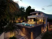 An estate in a unique enclave with marvelous views to the sea and the iconic Peñón de Ifach near the town of Calpe. It is a development located in Maryvilla Resort, selected by location, orientation and views of the sea in which each villa has been designed and specifically adapted to this plot with an exclusive design and it´s own character, integrated into their surroundings as well as designed to enjoy the sea views and the benign Mediterranean climate. The resort has its own marina as well as one of the best restaurants in Calpe. This home is distributed into three floors, turning it into a practical and functional house. In the ground floor you will find the entrance with an elevator. There is also a garage for two cars, storage room and an apartment with one bedroom, kitchen-living room and a bathroom. In the main floor, from the entrance you get access to the hall, where you will find in front and on the left side the daily area. Here we can find the kitchen completely open to the dining room and living room, from where you can directly access to the terrace. There is also an exit to the barbecue directly from the kitchen. On the right side we get access to the night area distributed into 2 bedrooms. The master room has an individual bathroom as well as a dressing room and the adjacent bedroom has its own bathroom too. On the second floor, we can find the master room with an individual bathroom as well as a dressing room and a private terrace with fantastic sea views. On the terrace, you can find the pool with a relaxing area to enjoy the sun or a dinner at the barbecue, as well as access to the garden zones. Location: Maryvilla, Calpe Coast. Costa Blanca North. Sqm plot: 885 sqm Total built sqm: 321 sqm Total auxiliar sqm: 231 sqm Number of bedrooms: 4 Number of bathrooms: 4 Status: Project