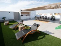 We present you a new bungalow on the top floor in San Pedro del Pinatar in the urbanization of the closed type of La Llana Beach. The apartments on the ground floor with an area of 78.57 sq.m. consist of: three bedrooms, two bathrooms, a spacious living room, American cuisine, a terrace of 10.65 sq.m., a solarium on the roof of 70.35 sq.m. La Llana Beach is a complex of modern houses with three bedrooms, fully equipped with everything necessary for a comfortable stay. It is located just a two-minute walk from the center of San Pedro del Pinatar. The accommodation on the top floor includes a spacious solarium with a summer kitchen and a large storage room, which is located on the first floor. For owners of houses on the lower floor there is a large terrace with a garden and a separate economic area for convenience. Distance to the sea - 4 km.The city of San Pedro del Pinatar is a unique place. Its uniqueness lies in its location on the shores of two Mar Menor Seas and the Mediterranean Sea. Due to its beauty and urban identity, San Pedro is popular among Spaniards and Europeans for recreation and permanent residence. The city has developed infrastructure, schools, supermarkets, bars, restaurants, sports halls, spa hotels, etc. Online reserve, purchase in installments, as well as purchase on credit at 3-6% is possible. Buying property in Spain, you can obtain a residence permit in Spain. Our company helps to issue a residence permit of any type.