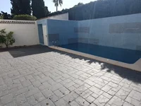 On the ground floor we find the main entrance of the house that leads us to a spacious living-dining room that is used in summer as it is more protected from the sun. From here, there is another large living-dining room which is used more in winter as it has a fireplace, perfect for family gatherings or with friends. Next to it is the kitchen, fully equipped with modern appliances and a functional layout. The lounge area opens onto a lovely 54m2 glazed terrace, perfect for enjoying the Mediterranean climate and views of the garden and pool.