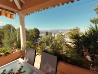The basement consists of a guest apartment with a private entrance, one bedroom and one bathroom, living with chimney and possibility to build a small kitchen. The house has air conditioning hot/cold, chimney and central heating with gas. There is a private swimming pool with a lovely garden with many fruit trees. Carport for three cars. Nice views overlooking the mountains. Water deposit with directly access to the house.