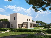 The villas feature an open kitchen with built-in appliances, a laundry room, en-suite bathrooms, a bathtub, and private outdoor spaces such as a terrace or balcony. Designed for comfort and energy efficiency, these exclusive villas combine modern luxury with a natural setting.