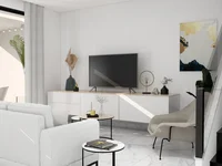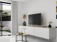 They stand out for their stylish and functional interiors. The modern design includes a spacious living/dining room that opens onto the garden, perfect for entertaining. The open plan kitchen is equipped with high quality integrated appliances. On the ground floor, the master bedroom features walk-in wardrobes and en-suite bathroom, while there is an additional guest bathroom. On the first floor, two double bedrooms with fitted wardrobes offer additional space for family or guests. Options such as a rooftop solarium add a touch of luxury. These interiors combine style and functionality to create a comfortable and contemporary home on the beautiful Costa Blanca.