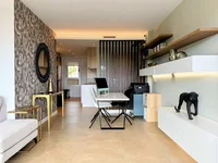 Step inside to find a bright and spacious open-plan living area, seamlessly connecting to a large private terrace, perfect for al fresco dining and soaking in the stunning golf course views. The modern kitchen is fully fitted with high-end appliances, while both bedrooms offer built-in wardrobes and direct access to outdoor spaces. The master suite boasts an en-suite bathroom and terrace access, enhancing the luxurious feel.