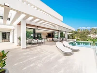 Outside, the property offers a large panoramic terrace with infinity pool, chill-out areas and outdoor dining space, ideal for enjoying the Mediterranean climate throughout the year. The master suite includes two en-suite bathrooms and two separate walk-in wardrobes, while the villa also features a staff room, laundry area and private garage for four cars.