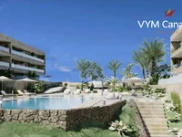 This spacious and bright apartment is located on the ground floor and has a large terrace with views of the ocean, the pool, as well as unrivaled views of the elegant Montaña Roja mountain. The apartment has direct access to the beach of La Tejita.