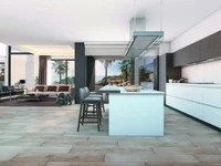 In the same floor we can see a large and fantastic kitchen from which we can enter to the attractive outside porch with a paved surface depending on the type of house. In practice, it becomes an open-air dining room, extending the space of the already spacious living-room.