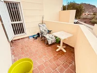 The independent kitchen comes fully fitted and equipped, complemented by a separate utility room. The bright and airy lounge/dining area opens onto a private terrace with pleasant views of the mountains and surrounding streets. The property also includes a private garage and a storeroom for additional storage.