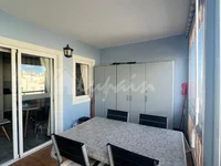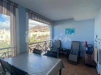 A lovely corner apartment in the very popular Dinastia complex in Los Cristianos. This modern complex has a large, heated pool, pool bar, and is just 100 metres from the Pasarella centre with its numerous shops, supermarkets, bars, restaurants and food hall. The apartment itself comprises of 1 bedroom with fitted wardrobes and bathroom. There is a fully fitted and equipped American style kitchen and lounge/dining area with patio doors leading onto the terrace with street and mountain views. Parking is available immediately outside the complex.