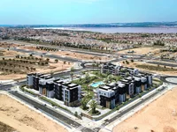Elegant premium apartment in Torrevieja. Torrevieja is a popular resort town in the south of the Costa Blanca, known for its salt lagoons and unique microclimate. Here stretches wide beaches with golden sand and embankments, ideal for walking. The city has a developed infrastructure: numerous restaurants, shops, schools and medical centers make it convenient for permanent residence. Torrevieja is famous for its atmosphere, attracting residents and tourists from all over the world. Thanks to the combination of nature, sea and infrastructure, it remains one of the most sought-after places to relax and live in Spain. We present new modern apartments in a closed residential complex of high class, located in a quiet and landscaped area of Torrevieja. This is the perfect combination of coziness, style and functionality, created for a comfortable life and relaxation by the sea. The apartment of 77.10m2 is located on the lower floor and includes a spacious living room with kitchen and dining area, two bright bedrooms, two bathrooms and a large terrace of 48.22m2, where you can enjoy the Mediterranean climate all year round. The price already includes a full package of furniture, household appliances, air conditioning with cold / heat modes, lighting, electric blinds, warm floors in bathrooms and an equipped kitchen. There is also an underground parking space and storage room, and additional interior details - from a coffee maker and toaster to dishes - make the apartment fully ready for occupancy. The residential complex offers residents a rich infrastructure: a large pool with green areas, an artificial pond, barbecue and sports grounds, tennis courts, a petank area and a playground. Within walking distance are shops, shopping center, pharmacies, medical center, schools, banks, parks and public transport stops. This facility will be an excellent choice both for permanent residence and for an unforgettable holiday. It is possible to purchase online, installments are available from the developer for the construction period, as well as a mortgage from the bank at 4-6%. Buying real estate in Spain opens the possibility of obtaining a residence permit of any type.