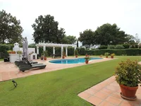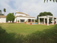 Luxurious 5 bedroom villa in very good condition in zone E of Sotogrande Alto.The villa has two floors plus a basement. Hot/cold air conditioning and radiators throughout the house.On the ground floor there is a spacious living room with an adjoining dining room and fireplace, a huge fully equipped kitchen with pantry and access to the laundry room, 4 large bedrooms with en-suite bathrooms and a beautiful Moorish style tea room with fabulous tiles and Nasrid friezes. From the living room you can access a large covered terrace that serves as a dining room and chillout area overlooking the garden and pool. Next to the pool there is a barbecue area with a pergola and hammocks, perfect for the summer.In the basement is the garage with space for two cars, a gym and a large room with a sauna!On the upper floor is the fabulous master bedroom, with a dressing room, bathroom and a private terrace.The villa can be sold together with the adjacent plot, resulting in a total plot of approx. 5300 m2! Well maintained beautiful gardens with trees on both plots.Total price of Villa + Adjacent plot = 2,300,000 €Do not miss this opportunity!