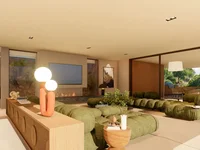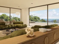 Spanning two thoughtfully designed levels, the villa's architecture showcases floor-to-ceiling windows that flood the interiors with natural light while framing breathtaking vistas of the ocean and mountains. Its clean lines and open spaces create a sense of sophistication and harmony with the environment.