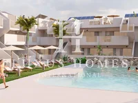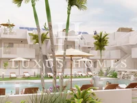 Set within a secure, master-planned resort community, this refined collection of contemporary maisonettes offers an exceptional Mediterranean lifestyle where elegant design meets high-end comfort. The homes feature 2 or 3 bedrooms and 2 modern bathrooms, thoughtfully designed to maximize space, light, and everyday functionality. Residents enjoy access to beautifully landscaped communal areas, including a large swimming pool with cascade, green zones, sports facilities, and children’s play areas—ideal for relaxation and year-round enjoyment. Adding to the appeal, the surrounding resort environment offers outstanding leisure amenities such as a sandy-beach style lagoon pool with waterfalls, restaurant and bar, a new built commerial areas with supermarkets and shops, outdoor gym, padel tennis courts, bowling green, dog park, and extensive walking paths, creating a true holiday atmosphere at home. Ground-floor residences feature private terraces, while top-floor homes boast expansive solariums with summer kitchens, perfect for outdoor dining and entertaining. Interiors follow a contemporary open-plan concept, blending a fully fitted kitchen with a bright living–dining area. Kitchens come fully equipped with premium appliances including oven, microwave, fridge, integrated dishwasher, extractor fan, and a central wooden island. LED lighting enhances both indoor and outdoor spaces, while bathrooms are fully fitted with suspended toilets, rainfall showers, vanity units, illuminated mirrors, and sliding shower screens. Additional features include built-in wardrobes with drawers, pre-installation for ducted air conditioning, photovoltaic solar system, aerothermal heat pump, videophone entry, and private parking with optional storage. Located approximately 15 minutes from the Mar Menor beaches, close to major golf courses, and under 20 minutes from Murcia International Airport, these homes are ideal for permanent living, holidays, or a high-potential lifestyle investment.