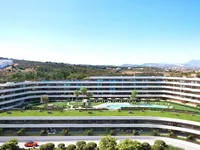 The residential complex is designed to create a pleasant community atmosphere with well maintained shared spaces. Landscaped gardens with Mediterranean plants surround the main communal areas, offering green spaces where residents can relax and enjoy the mild climate. A large swimming pool forms the central point of the outdoor area, providing a refreshing place to cool off during the warmer months. The communal environment is carefully arranged to encourage relaxation and outdoor living while maintaining a sense of privacy within the development.