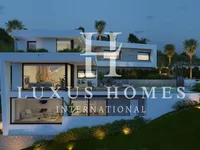 This villa is a project of astonishing shapes, exterior spaces designed in harmony with their surroundings, with natural materials, and where green prevails, and the blue sea in the background, in all a unique villa.