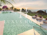 Luxury villa with large roof top terrace, private pool, garden, gym, spa and stunning sea view located next to a golf course