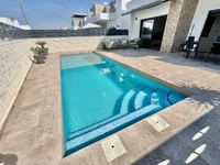 In the picturesque town of Benijófar, this exclusive detached chalet combines practical modern design with an atmosphere suitable for family moments and relaxation with friends, while also representing a smart investment for the future. The house offers three spacious bedrooms with built-in wardrobes and two stylishly decorated bathrooms, all decorated with an emphasis on comfort and ease of maintenance, while elegant porcelain tiled floors underline the overall impression of quality and clean lines. The interior spaces are pleasantly tempered thanks to a modern air conditioning system, so that home comfort is guaranteed all year round. The exterior is a private oasis with its own swimming pool, a large terrace for meeting and relaxing and a practical solarium, which provides another place for sunbathing and watching the sunny days.