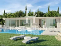 High end villa with large roof top terrace, private pool, garden, gym and stunning sea view located close to the beach