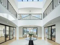 Inside, the villa is equipped with all the modern amenities necessary for a luxurious lifestyle. The five bedrooms are designed to offer maximum comfort, each with built-in wardrobes that optimize storage space. The seven elegantly decorated bathrooms ensure privacy and convenience for all residents. The layout includes a garage, providing a secure space for parking and additional storage.