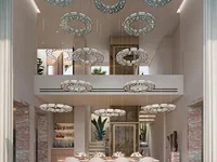 The interior of the villas has been designed with comfort and functionality in mind. Each villa features five bedrooms and six bathrooms, offering a spacious and comfortable area for the entire family. The inclusion of a home automation system allows residents to control various aspects of the home efficiently and modernly. Built-in wardrobes in the bedrooms provide practical and stylish storage. Additionally, each villa includes a garage, ensuring ample space for vehicles and additional storage.