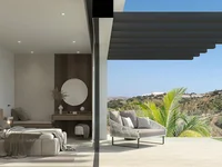 The villa's interior is designed to maximize comfort and functionality. Porcelain tile floors add a modern and elegant touch to every room. The villa is equipped with air conditioning and underfloor heating, ensuring a pleasant temperature year-round. Built-in wardrobes offer ample storage space, while high-end appliances in the kitchen facilitate daily tasks. The layout of the spaces is designed to offer privacy and comfort, with spacious rooms that allow for a cozy and sophisticated atmosphere.