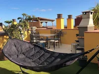 For sale apartment in the Aneto I complex in the town of Parque de La Reina, in the south of Tenerife Island.It consists of a living room, a kitchen, two bedrooms, one bathroom, a balcony from which you can climb the spacious terrace via the spiral staircase. An additional third bedroom is made on the terrace, there is a barbecue area, a solarium. The price includes a parking space in a closed garage and a pantry.The area of the apartment is 71 m2, terraces and a balcony of 55 m2, garage and pantry 31 m2.The apartment is sold partially furnished.