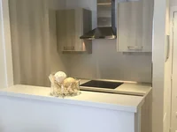 For sale apartment in the Garden City complex in San Eugenio Bajo, located in 5 minutes walk from El Bobo Beach. The apartment is completely renovated. Consists of a living room, American kitchen, two bedrooms, one bathroom with a shower. From the living room and bedroom access to a 14 m2 solar balcony with partial ocean views.The complex has a communal heated pool. Underground parking in the complex, elevator.Communidad € 100 per month.