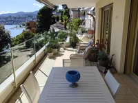 Spacious double living room and two bright bedrooms, each with large panoramic windows opening directly onto the south-facing terrace with breathtaking lake views