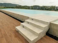 Residents have exclusive access to the roof with a jacuzzi, swimming pools, a running track, a sunbathing and yoga area, a barbecue area. The buildings are connected by passages, forming a single complex, surrounded by greenery and beautiful views of the lakes and the ocean.