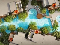Amenities: lobby with semi-open terrace, two swimming pools, garden with sunbathing area, children's playground and backyard, co-working/conference room, fitness center, golf simulator, terrace with BBQ area, 24-hour surveillance, laundry.