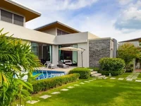 Modern villas are located in the south of Phuket and are designed in Zen with high ceilings (3 m) and large sliding doors. The villas have an area of 323 to 390 sq.m. on plots from 544 to 758 sq.m. Each bedroom has its own bathroom with a recessed bathroom, and the master bedroom has views of the pool and garden. Spacious terrace (4x10 m), swimming pool with traditional lard and covered parking complement the comfort. All villas provide breathtaking views of the mountains and garden.