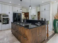 Amenities: modern kitchen with island countertop and integrated appliances; large living room equipped with 75-inch Smart TV, JBL surround sound system and modern cabinetry; dedicated fitness room with multi-functional exercise machines and massage chair; high-speed fiber optic internet and full Wi-Fi coverage; fenced garden with electronic gates; outdoor covered BBQ/kitchen area with bar; expansive swimming pool with special laser cleaning system; large terrace with dining set, sun loungers and parasols; garage for 2 cars.