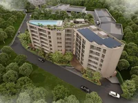 Amenities: lobby, security and security, concierge service, room service, solar panels and rainwater collection systems, energy-efficient windows.