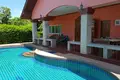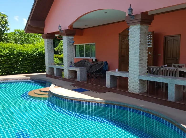 Villa with a huge territory of 1600 sq.m. and a swimming pool in the village of Nong Pla lai. The villa house with 3 bedrooms and 4 bathrooms. House - 180 sq.m. with a large terrace near the pool, a lake and a tropical garden. In a brick house expensive quality repair, marble floor.
