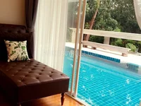 White colors of the villa front combine the simplicity and luxury of Thai flavor. Huge panoramic windows of the spacious living room overlook the private pool. Three bedrooms have stunning views over the green mountains. Having three bathrooms it provides residents with additional comfort. Elegant and spacious area for sunbathing and relaxation is well-equipped and is decorated with natural wood. This place will become a favorite one for the villa owners and their guests.