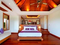 Grand luxury villa nestling on a private and secured hillside on the west coast of Phuket, an elegant style in a flourish of traditional Thai roofs. From a commanding height of 80 meters, Villa gives you the breath taking panorama of the Andaman Sea to the west, the towering 'Gothic' dome - like mountains of Phang Nga to the north and the lush green valley that reaches out toward them. The play of terraces and salas throughout the three levels of the Villa ensures that they capture the breeze from the ocean in all seasons, as guests lie back and watch the distant horizon just beyond the crystal clear water of the eighteen meter Infinity pool.