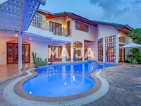 Experience timeless elegance and contemporary comfort in this beautifully designed 5-bedroom (plus 1 in a guest house), 6-bathroom pool villa. Nestled on a generous 1,591 sqm plot, this Italian-style residence seamlessly blends classic European charm with modern luxury, offering a peaceful escape in a highly secure neighborhood.