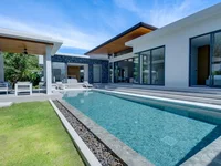 This newly built 4-bedroom, 5-bathroom pool villa in the prestigious Botanica Modern Loft Phase 1 is now available for sale. Located in the heart of Bangtao, the villa offers modern tropical living with quality construction, thoughtful upgrades, and a quiet, private setting surrounded by trees. Set on a 590 sqm land plot with 414 sqm of built-up area, the villa comes fully furnished and move-in ready. Ideal as a family home or investment, it blends open-concept design with stylish interiors, high ceilings, and plenty of natural light. Property Features: Price: THB 30,000,000 Land Size: 590 sqm Built-Up Area: 414 sqm Bedrooms: 4 (all en-suite) Bathrooms: 5 (4 en-suite + 1 guest toilet) Pool: Saltwater, 4m x 12m with natural stone finish Ownership: Freehold (Thai Company) or Leasehold Parking: Covered for 2 cars + storage Fully Furnished and Ready to Move In Villa Highlights: Spacious 5m-high ceiling in the living area Full-length glass walls and natural light throughout Premium upgraded kitchen (THB 1M value) with Bosch appliances En-suite master with bathtub, shower, and dual sinks Covered outdoor sala with additional toilet Samsung 98” smart TV and premium sound system Bosch washer/dryer, PlayStation 5, and Yamaha digital keyboard Smart guest toilet and Grohe sanitary fixtures Extra electrical sockets throughout for added convenience Location – Cherngtalay - Srisoonthorn, Phuket: 15 minutes to Bangtao Beach and Boat Avenue 10 minutes to Makro, Tesco Lotus, and HeadStart International School Peaceful location on elevated ground – flood safe and private Centrally located in the village with convenient access to nearby amenities This villa is one of the best value options in the development, offering generous space, high-end finishes, and an unbeatable location. The owner has only lived in the home for one month, so everything is in pristine condition. Contact ThaiEstate today to arrange a private viewing of this exceptional villa at Botanica Modern Loft.