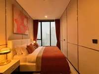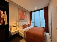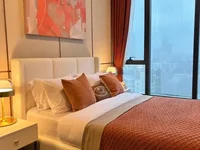 Feels like home right awayThis 35 sqm condo in Khlong Tan Nuea is a neat, well-thought-out space with everything you need for comfortable city living. The queen-sized bed faces large floor-to-ceiling windows, so you’ll get plenty of natural light and a nice view of the Bangkok skyline – perfect if you like starting your day feeling connected to the city.A space that worksThe layout is compact but smart. The open-plan kitchen with black marble countertops flows into the living area, which features warm wood floors and a beige sofa tucked near some indoor plants for a cozy vibe. There’s even a small desk by the window, so you’ve got a dedicated spot if you need to work or study.Details that matterSoft carpet in the bedroom and tile in the kitchen keeps things practical.Double-layer curtains give you flexibility on light and privacy.A modern bathroom with glass shower and marble tiles makes cleaning easy and feels fresh.Built-in wardrobes and media console maximize storage without crowding the room.Overall, it’s a warm, neutral-toned space with subtle pops of rust and burnt orange that add character without being overwhelming. Plus, private elevator access means convenient, quiet entry. If you want something ready to go in Watthana with a genuine city feel, this is worth a look.