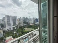 Feels bright and open, with great use of spaceThis is a solid resale condo on the 25th floor, offering three bedrooms and three bathrooms—perfect if you want space for family or guests. The layout really opens up in the living and dining areas, where the floor-to-ceiling windows flood the space with natural light and give you those classic Bangkok city skyline views, including some nice green patches nearby.Details that make daily life easierWooden flooring runs throughout, adding warmth, while recessed ceiling lights keep everything softly lit in the evening. You’ll likely spend most of your time here: the living room is comfy with a modern sectional sofa, cushions, and a TV mounted on the wall, plus a rug that ties it all together. The dining area features a large wooden table with enough chairs for dinner parties, and the kitchen is well-equipped with white cabinetry, a built-in oven, electric stove, and black countertops.Private and practical spacesThe bedrooms are spacious, with sizable windows letting in light and views. A walk-in closet with multiple rods and drawers adds smart storage, while bathrooms have sleek fixtures and a mix of shower and bathtub options. There’s also a handy storage room with racks—ideal for shoes or even your golf bag.Extra perksBalcony access with metal railings and city viewsAir conditioning units throughoutNeutral, calming wall colors enhanced by indoor plantsSoft textiles and tasteful decorative touches that make it feel like homeAll in all, it’s a comfortable, stylish spot that offers both city energy and some peaceful pockets. Definitely worth a look if you want a roomy, practical base in Khlong Toei.