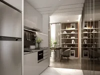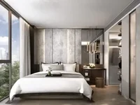 Step Inside a Light-Filled, Contemporary Bangkok CondoThis 2-bedroom, 1-bath condo on Sukhumvit Soi 10 feels really open and fresh thanks to those floor-to-ceiling curved windows. You’ll get plenty of natural light throughout the day, and the urban cityscape views make it a nice spot to just relax and watch the city buzz below.The layout is smart and practical — the open-plan living and dining areas flow together smoothly, so you’ll probably spend most of your time here. The contemporary minimalist design keeps things feeling calm, with neutral colors, light wood floors, and recessed ceiling lights that create a soft, welcoming atmosphere.The kitchen is modern and efficient, featuring sleek white cabinets, a built-in oven and stovetop, stainless steel fridge, and thoughtful touches like under-cabinet lighting and a marble-effect countertop. There’s even a handy wall-mounted utensil rack to keep everything organized.Storage is well integrated with built-in shelving in the living area, perfect for books, decorative pieces, or whatever you want to display. The comfortable daybed and sculptural glass coffee table add personality without overcrowding the space. Overall, it’s a stylish yet practical home that's ready to move into without needing any work.