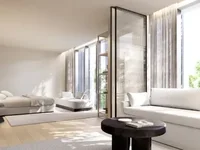 Bright, Open-Plan Duplex in the Heart of WatthanaThis offplan condo offers a really spacious feel with its high ceilings and floor-to-ceiling glass windows—you’re going to get tons of natural light throughout the day. It’s a duplex layout, so there’s a good sense of separation between living and sleeping areas, which makes it practical if you want a quiet spot to retreat to while still having plenty of room for guests or a home office.Interior with Modern, Minimalist VibesThe design leans minimalist but thoughtfully done, with light-colored walls, smooth white surfaces, and natural wood accents that warm things up without feeling busy. The light wooden plank flooring adds to the airy feeling. You’ll likely spend most of your time in the spacious living room, which features a white sofa, black framed armchairs, and chic coffee and side tables—all arranged on a large area rug that anchors the space nicely.Details That Make a DifferenceFour bathrooms for convenience with three bedroomsRecessed ambient lighting and wall niches add a soft glow so evenings feel cozyPartition shelving units and indoor-outdoor connections bring flexibility and greenery indoorsOffered as bare-shell or fully-fitted, so you can tailor it to your tasteBeing freehold in Watthana means it’s a solid long-term investment in one of Bangkok’s vibrant neighborhoods. If you appreciate clean lines, natural light, and a layout that makes everyday living comfortable, this one’s worth checking out.