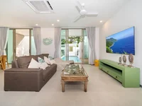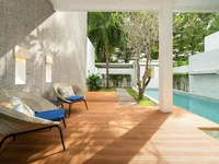 The third bedroom is conveniently located on the lower floor, close to the open-plan living and dining area that connects directly to the terrace and private pool measuring 3 by 8 meters.
