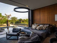 This ultra-luxurious villa is designed in a minimalist architectural style, featuring gold accents, black matte glass, and natural tones. The unique design, panoramic windows, and spacious terraces create an atmosphere of exclusivity, luxury, and a warm, homely feel.