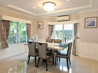 4 Bedrooms 3 Bathrooms House in East Pattaya for Sale. Offering 440 Sqm of land plot size. This property comes full furnished, spacious living area, built-in European kitchen, dining table, en-suite bathroom, car park and garden.