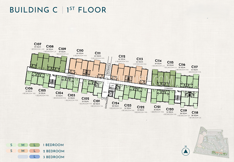 With a total area of 39 sq.m, the unit is thoughtfully designed for easy living, combining modern interiors with immediate access to shared leisure spaces.