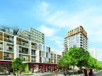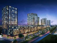The residence features a fitness center, yoga and pilates studios, walking and bike paths, a sauna, swimming pools, kids' playgrounds, shops, cafes and restaurants, a landscaped territory.