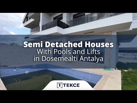 The adjacent semi-detached houses are located on a total of 664 sqm plot. Each house has a separate entrance, an open parking lot, security cameras, a garden, and a 30 sqm private pool.