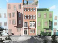 The four-storey building is built on 65 sqm of land. There is a terrace on the top floor of the building. Apartments in the building have balconies. The building consists of three 65 sqm 1+1 apartments and a 130 sqm 2+1 duplex apartment. The interior and exterior of the building will be renovated and it will be sold with furniture. It has a perfect location for Airbnb.